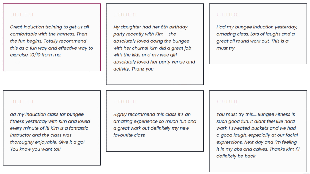 “I firstly went to the Bungee Super Fly class tonight, I absolutely loved it and have now joined as a member. Charlene made you feel very welcome start to finish. I can’t wait to go back”