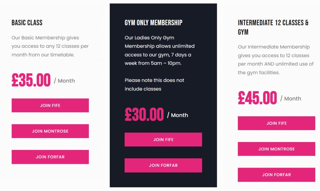 Description: Female-only club that advertises Bungee Super Fly — a harness + bungee, resistance & cardio full-body class. They claim to be the only Scottish studio licensed to teach Bungee Super Fly.