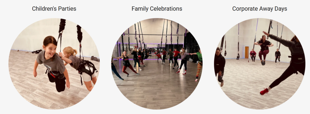 You can have a Bungee Party, Aerial Yoga Party be it for children or adults. Hen Parties with afternoon tea for that extra special touch. Catering is available for all parties or if you choose to you can just fly. Club socials, school visits, friends just getting together and a great deal more.